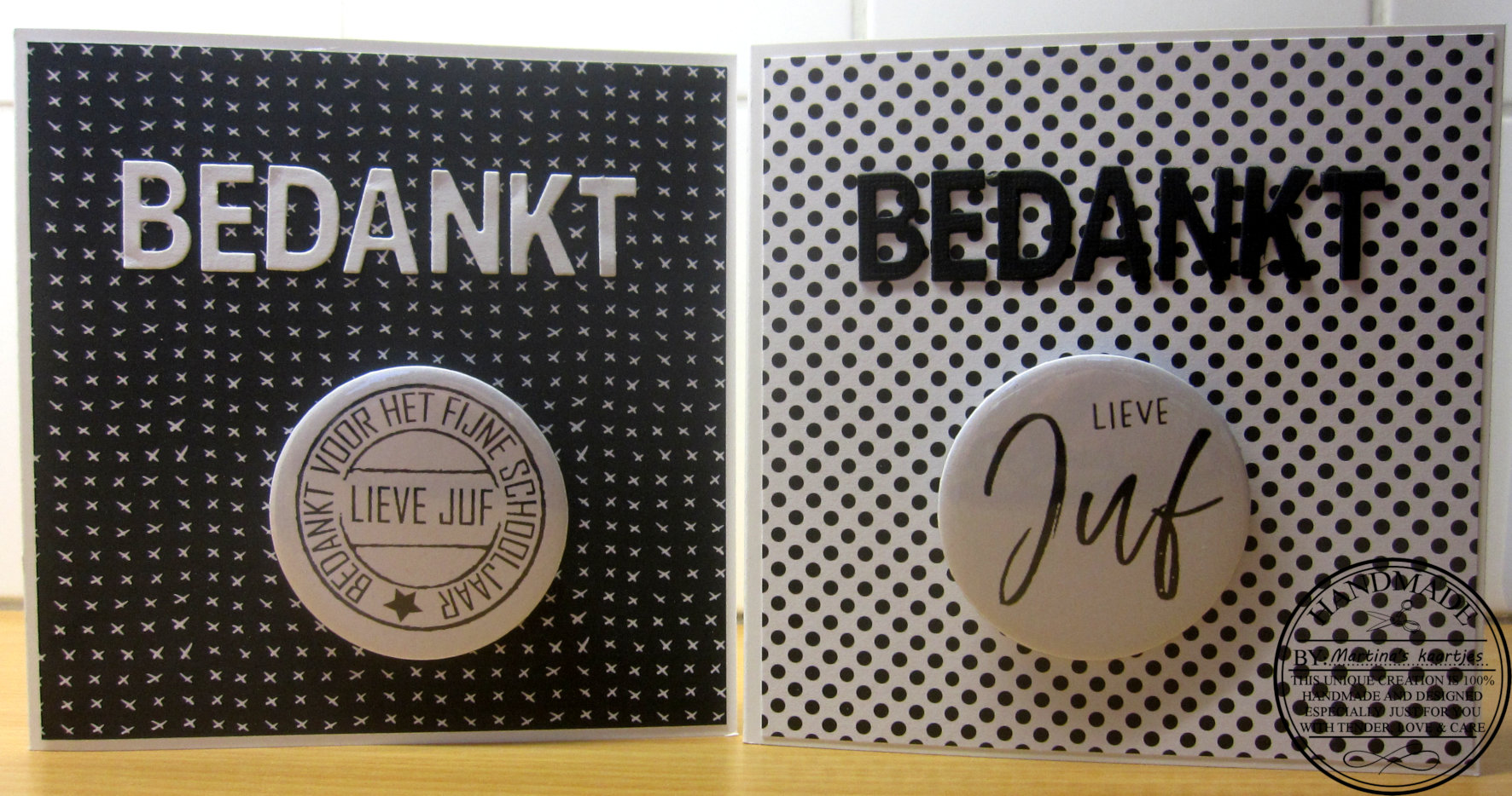 vandaag heb ik voor jullie een reeks bedankkaartjes dat ik maakte op vraag van collega's. Een leuke button er op, maakt het altijd net dat beetje specialer vind ik. Leuk om te geven, leuk om te krijgen.
